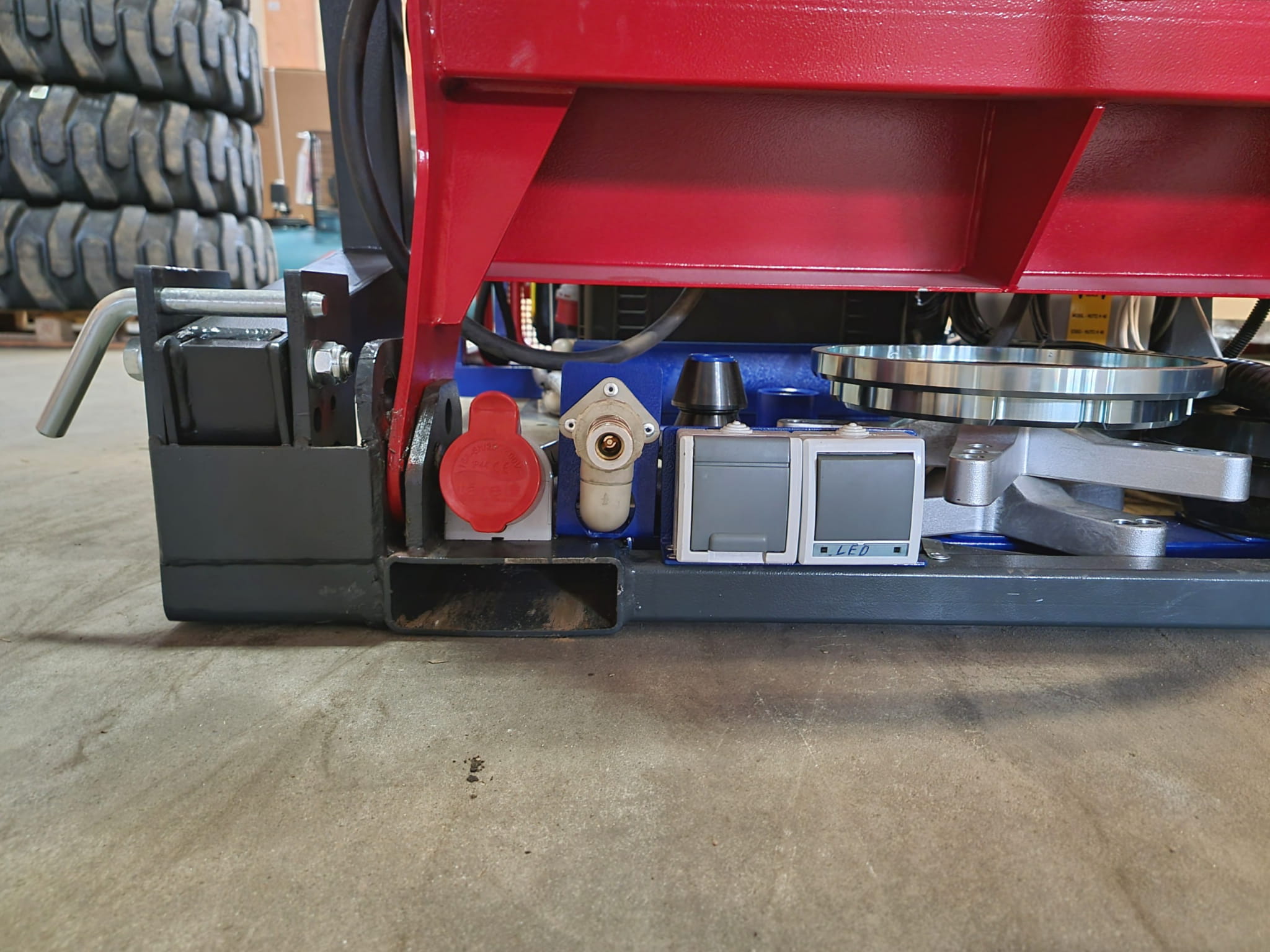 - Praca na zewnątrz: Część robocza montażownicy rozkłada się na zewnątrz pojazdu, co umożliwia efektywną obsługę opon w terenie.